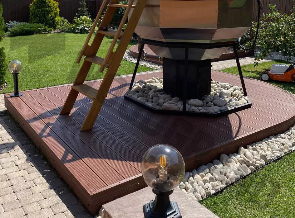 Увидела на просторах интернета рекламу с многообразием настила из ДПК доски. Обратилась в несколько компаний и остановила свой выбор на WOODGRAND. Порадовало, что производство находится относительно близко — с доставкой проблем не было. Монтаж настила из ДПК для зоны отдыха своими руками оказалось сделать очень просто. Цена доступная. Качество доски хорошее, приятная текстура, отлично подходит для хождения босиком. Получился уютный настил из ДПК для зоны отдыха во дворе.